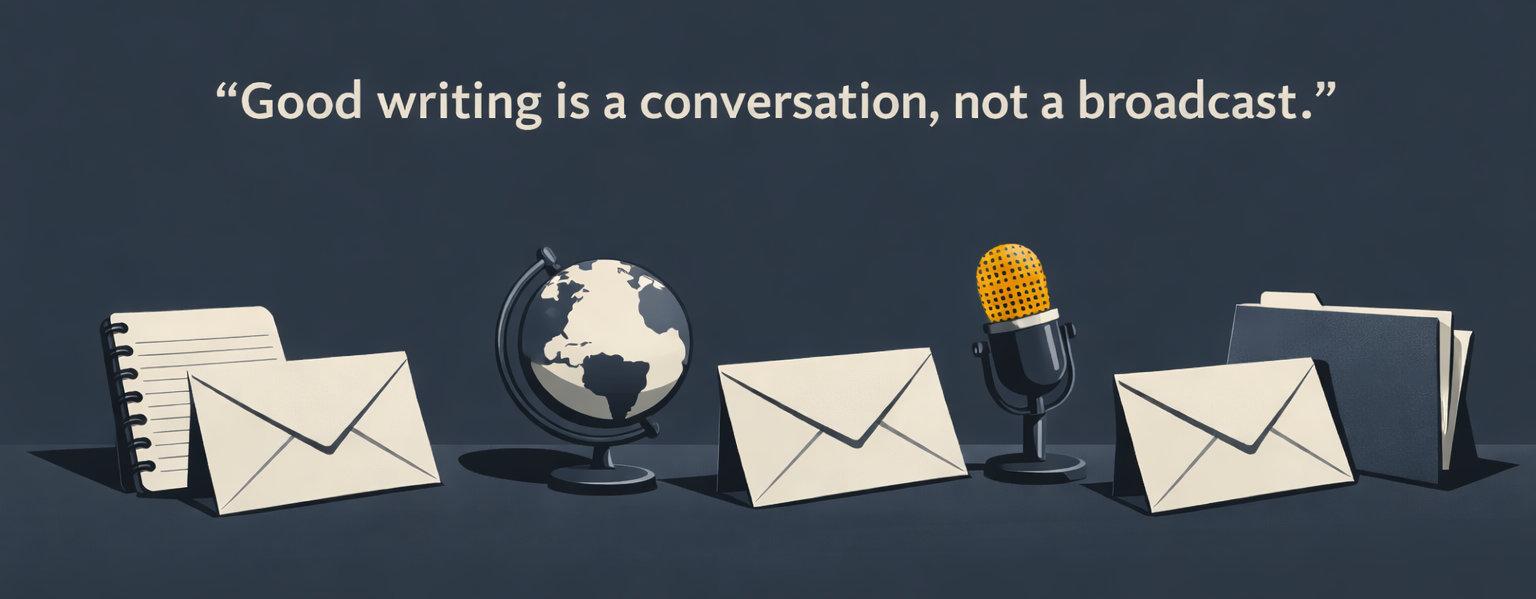 You read something I wrote. Pushback, questions, a related experience — all welcome. Good writing is a conversation, not a broadcast. If something I published made you think, I want to hear it.