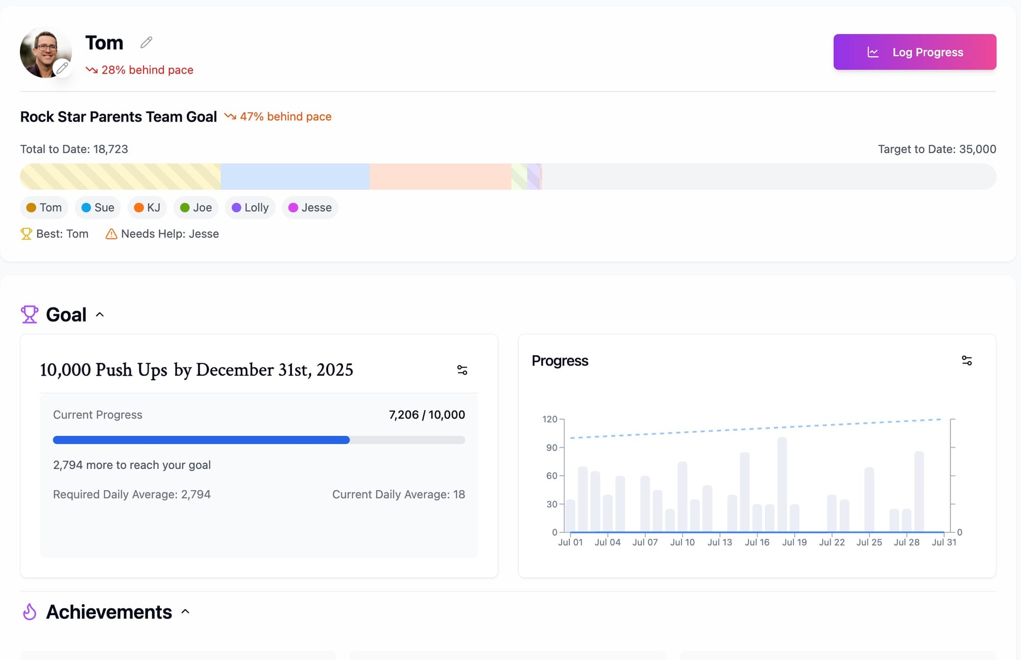 Different goals, different activities, each with their own team dashboard of commitment.