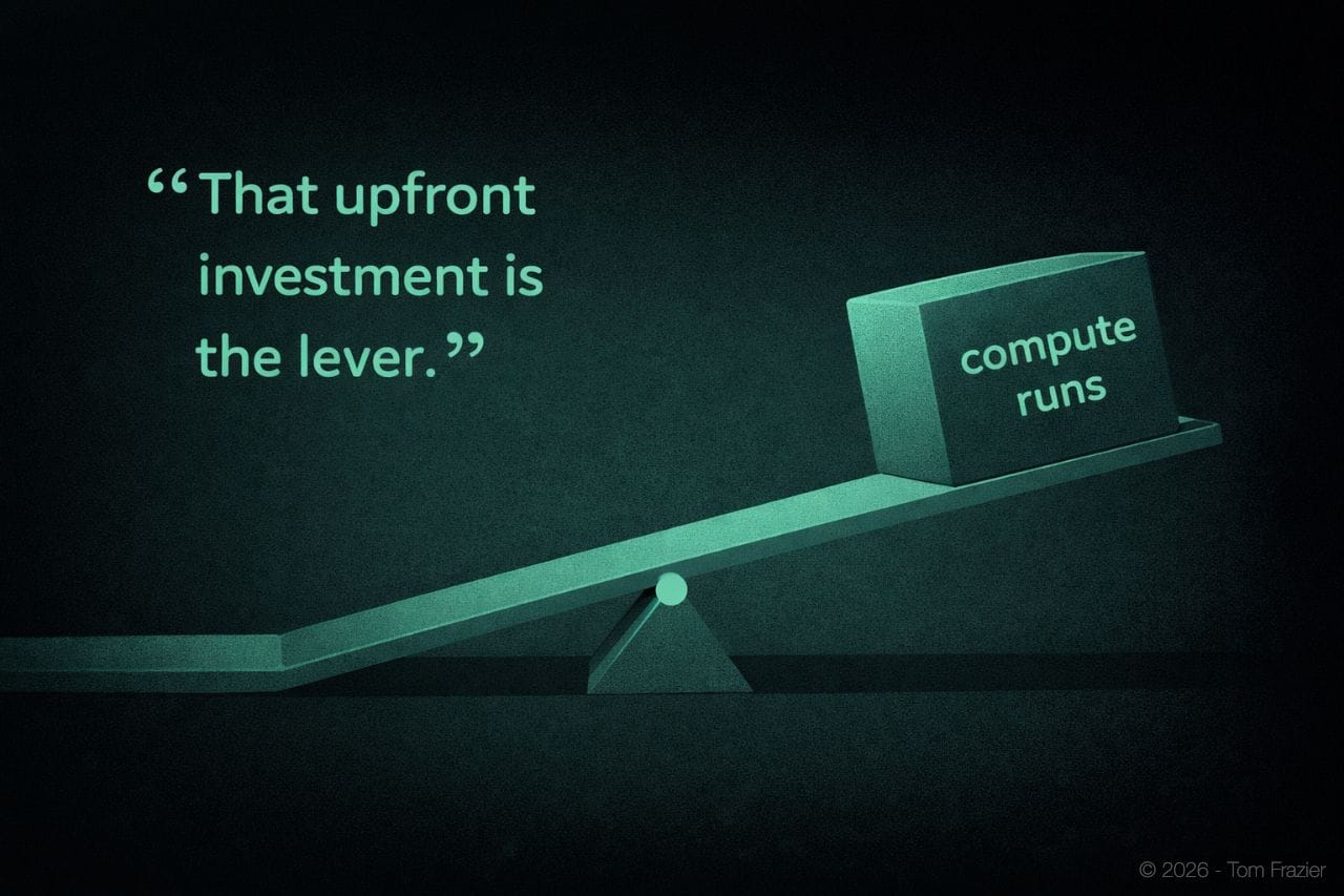 The operators getting the most out of AI agents aren't the ones moving fastest. They're the ones who spent the most time before launch defining exactly what done right looks like. That upfront investment is the lever. Everything else is just compute.