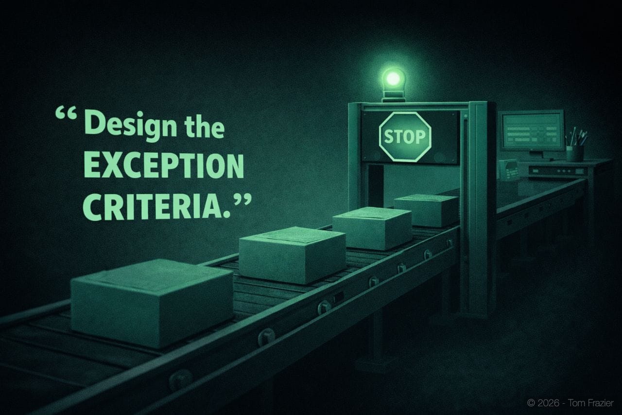 The Orchestrator's process work shifts from designing how tasks get done to designing the exception criteria, the conditions, under which execution stops and human judgment enters. This is a fundamentally different kind of process work. It requires knowing your domains well enough to anticipate where things break, and being willing to specify that in advance.